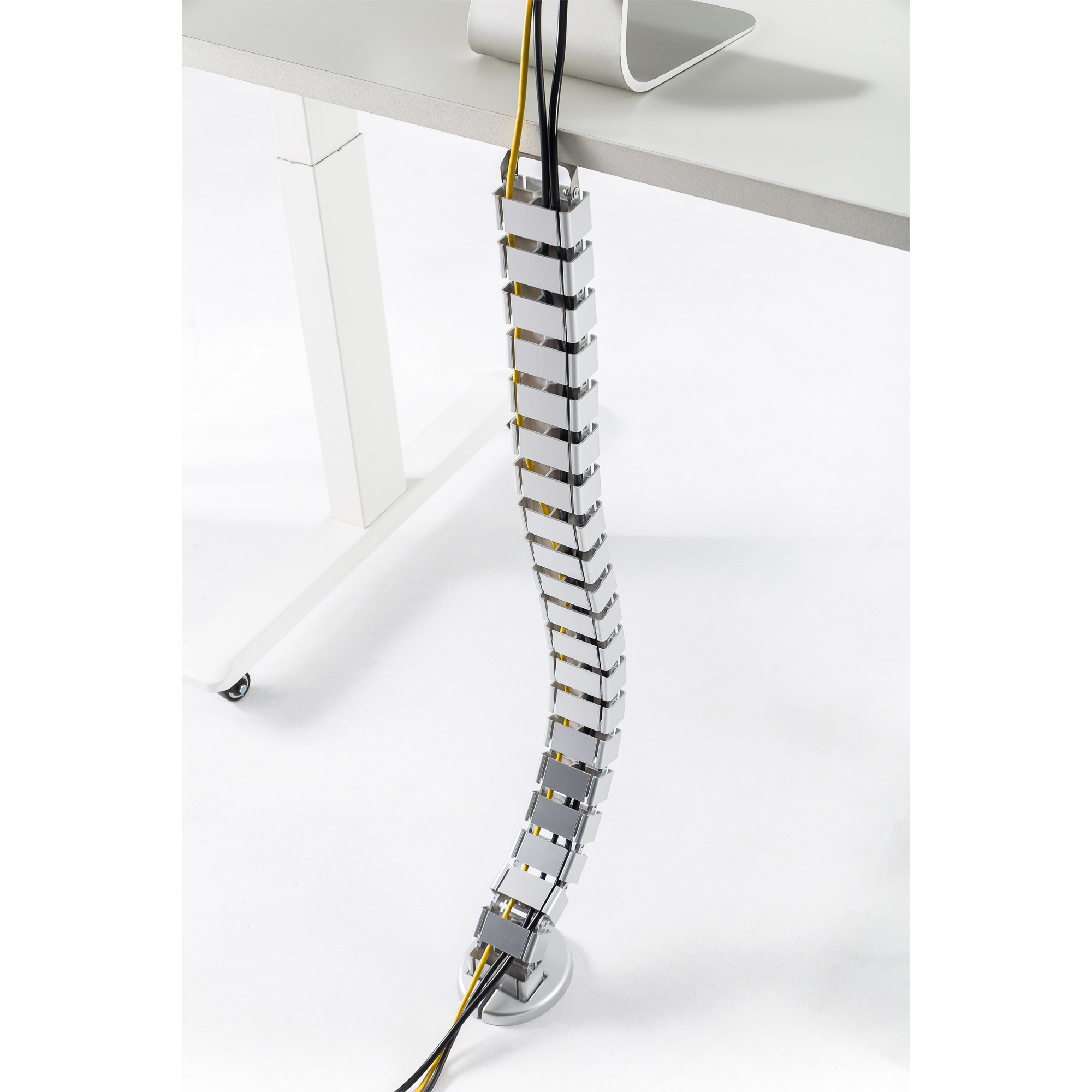 Mit einer maximalen Höhe von 1,28 m eignet sich dieser Kabelkanal auch für größere Tische. Der modulare Aufbau ermöglicht es, einzelne Glieder zu entfernen und so die Länge flexibel anzupassen. Ein gewichteter Standfuß sorgt für zusätzliche Stabilität. Die Ausführung in Grau fügt sich unauffällig in moderne Arbeitsumgebungen ein.