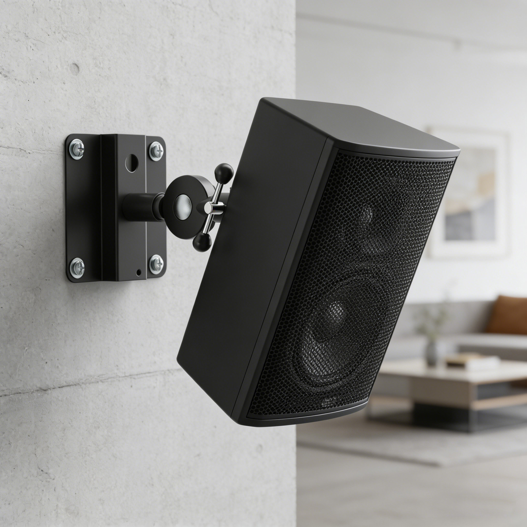 - Grundplatte: 110x100 mm (Lochabstand: 80x80mm), Boxenbefestigung: 78x40mm (Lochabstand 60mm)