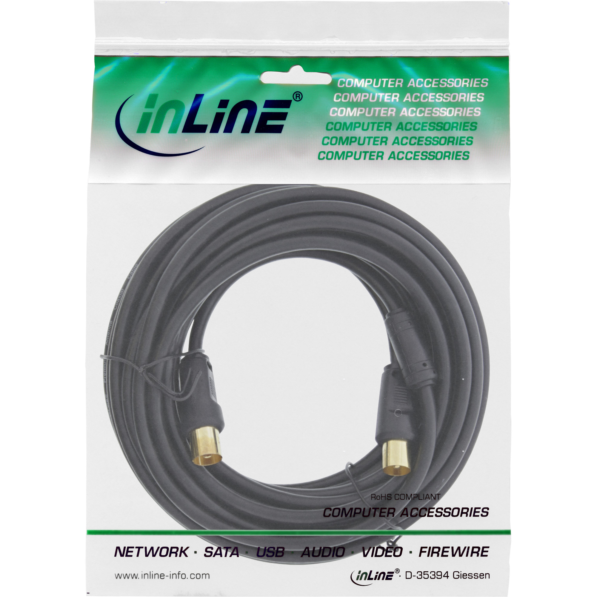 Startseite » Datenkabel & Adapter » SAT- und Antennenkabel » InLine® Antennenkabel 2x geschirmt mit Filter 85dB schwarz 0,5m