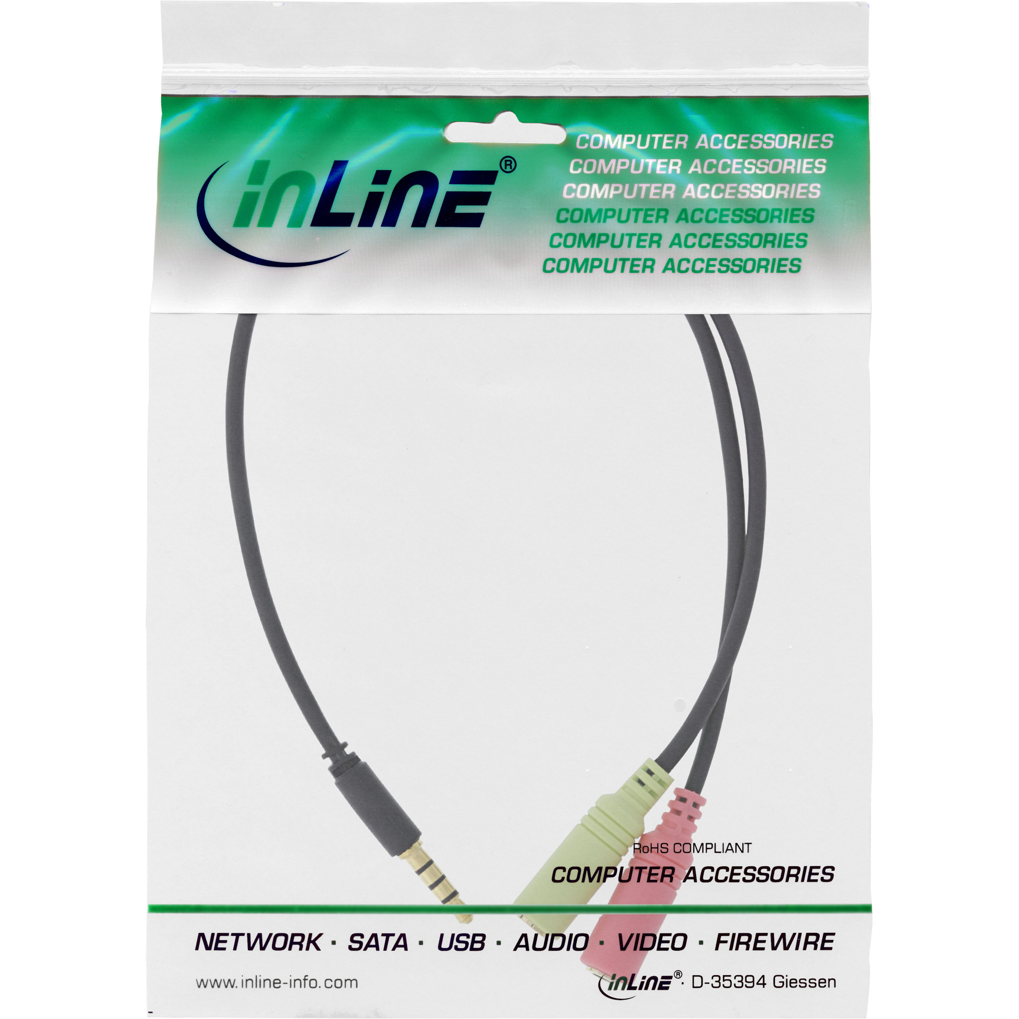 Startseite » Audio-Video Kabel & Zubehör » Analoge Audio- und Videokabel » InLine® Audio Headset Adapterkabel 3,5mm Klinke Stecker 4pol. an 2x 3,5mm Klinke Buchse 1m