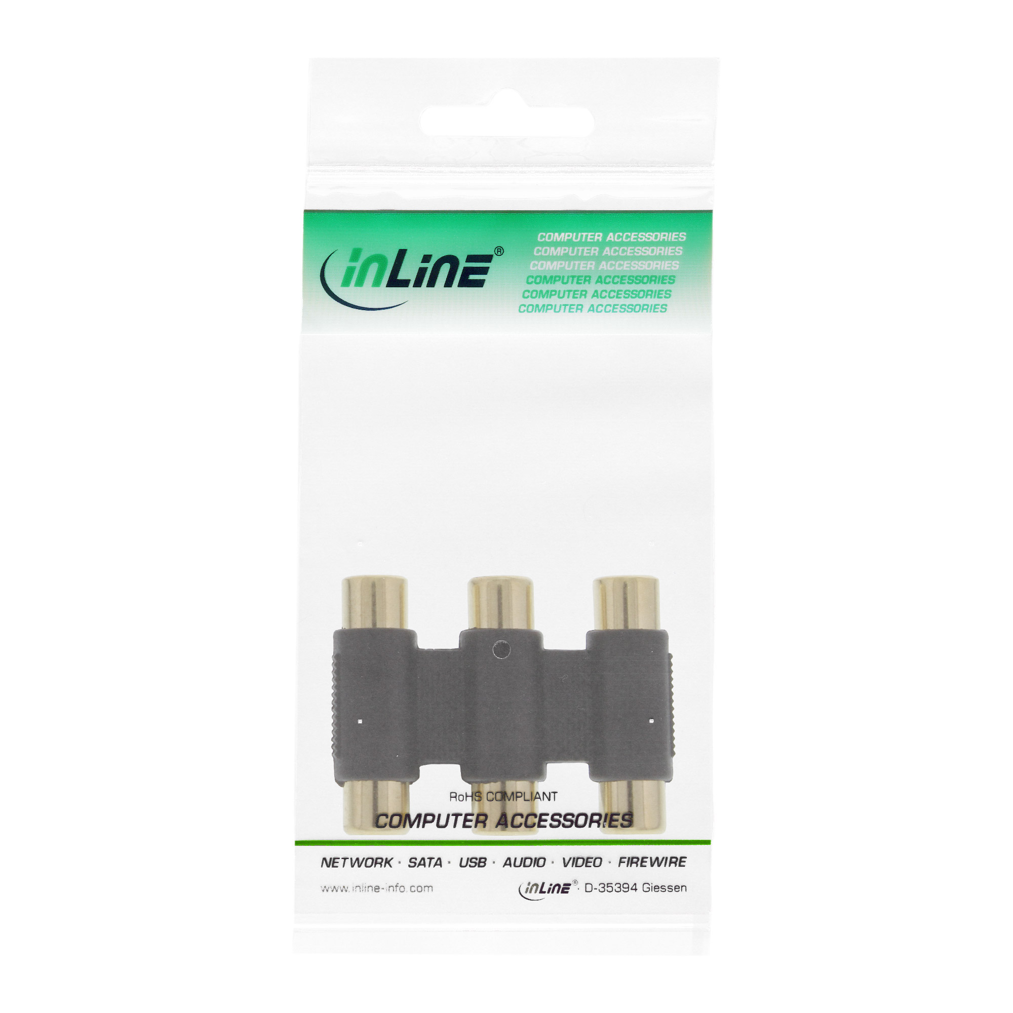 Startseite » Audio-Video Kabel & Zubehör » Audio-Video-Adapter » InLine® Audio/Video Adapter 3x Cinch Buchse auf 3x Cinch Buchse vergoldet