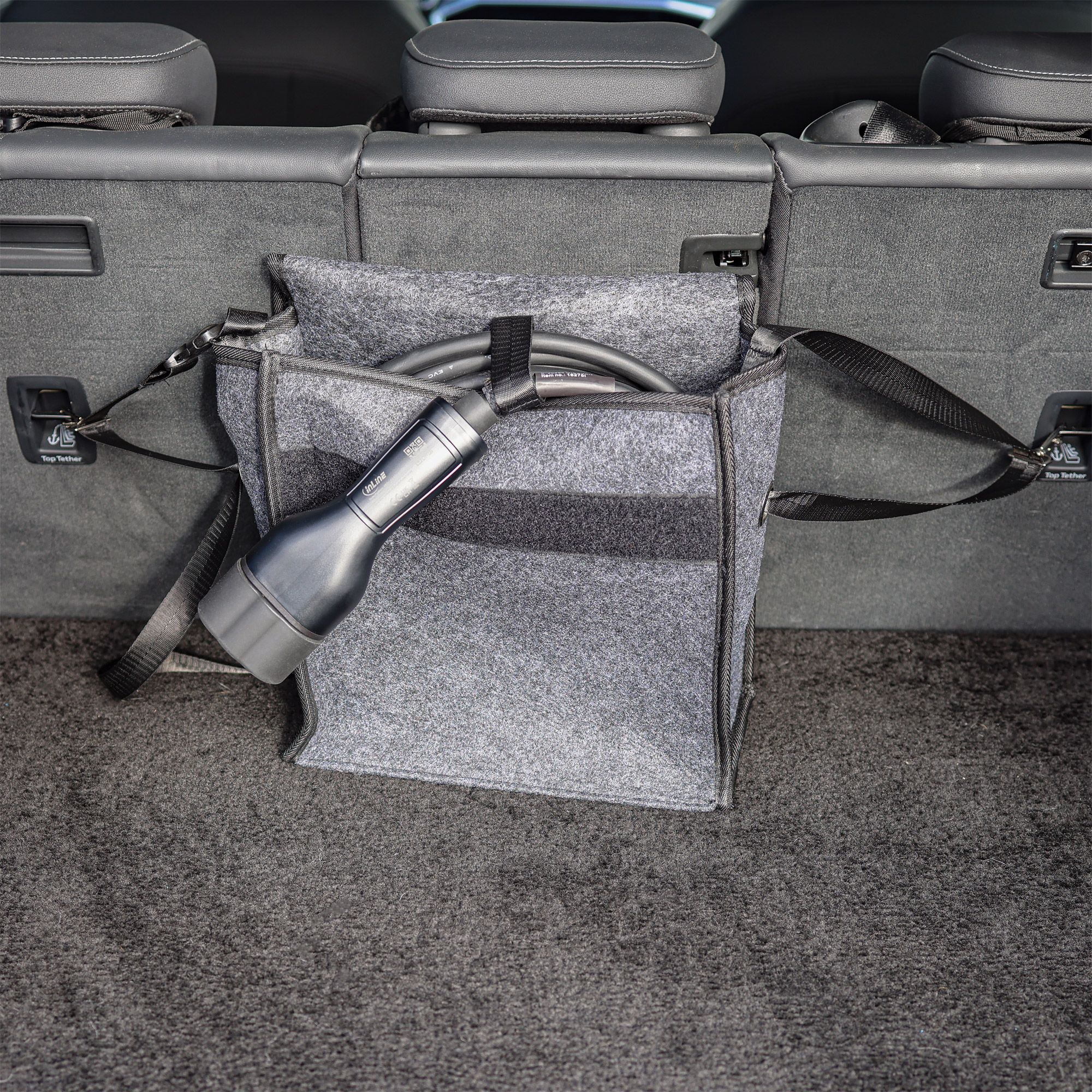 Dank der grauen Farbe passt diese Aufbewahrungstasche perfekt zu jedem Fahrzeuginterieur. Sie ist ein unverzichtbares Zubehör für alle Besitzer von Elektroautos oder Plug-in-Hybriden. Mit dieser Tasche haben Sie immer alles griffbereit und können Ihr Ladekabel sicher verstauen und transportieren.