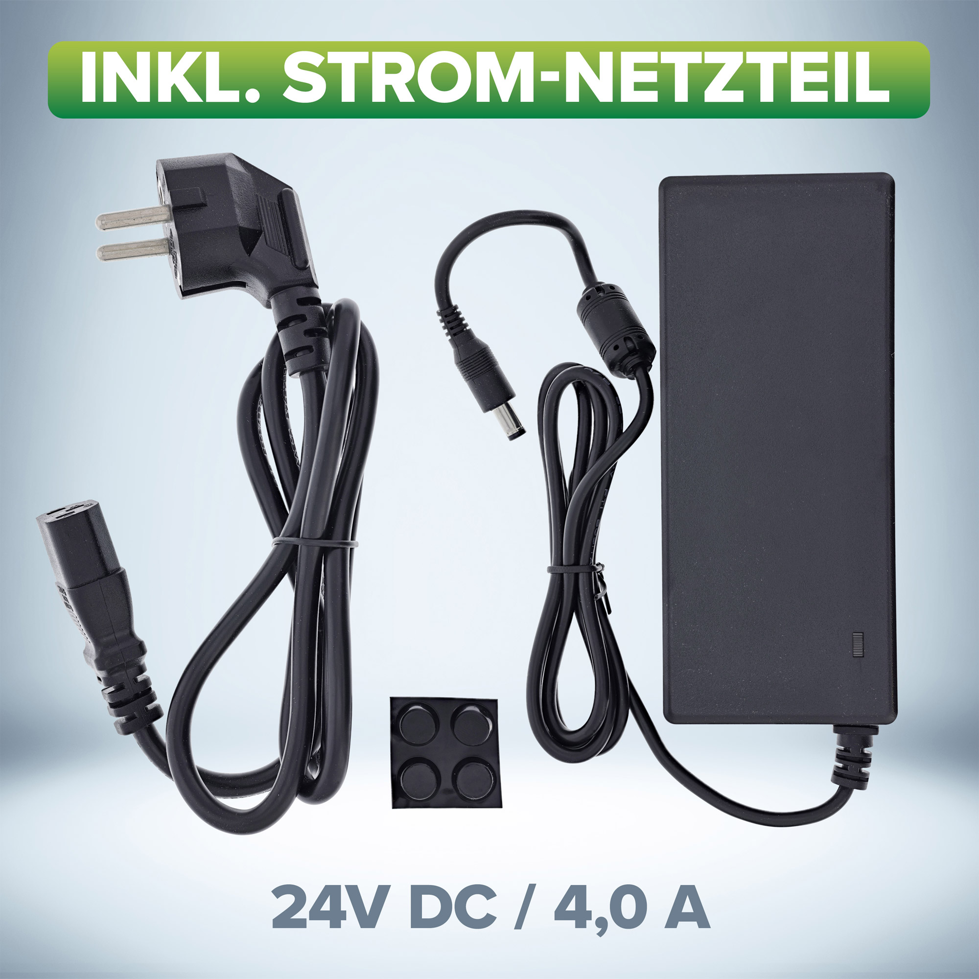 - Stromversorgung: 24V DC / 4,0 A über mitgeliefertes USB-Netzteil