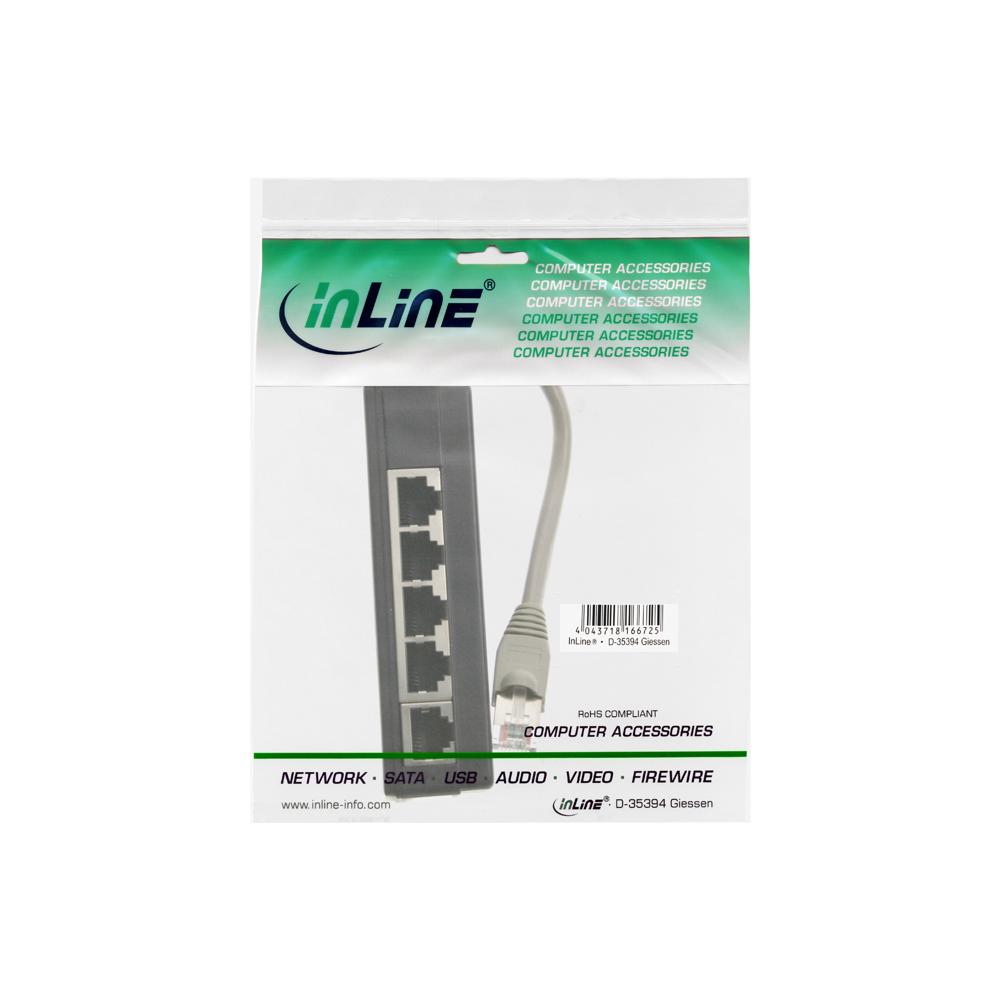 Der ISDN-Verteiler von InLine® ermöglicht die einfache Erweiterung eines S0-Busses für den Anschluss mehrerer ISDN-Geräte. Dank der fünf RJ45-Buchsen und des integrierten 15cm Anschlusskabels mit eingebauten Endwiderständen sorgt er für eine stabile und zuverlässige Verbindung.