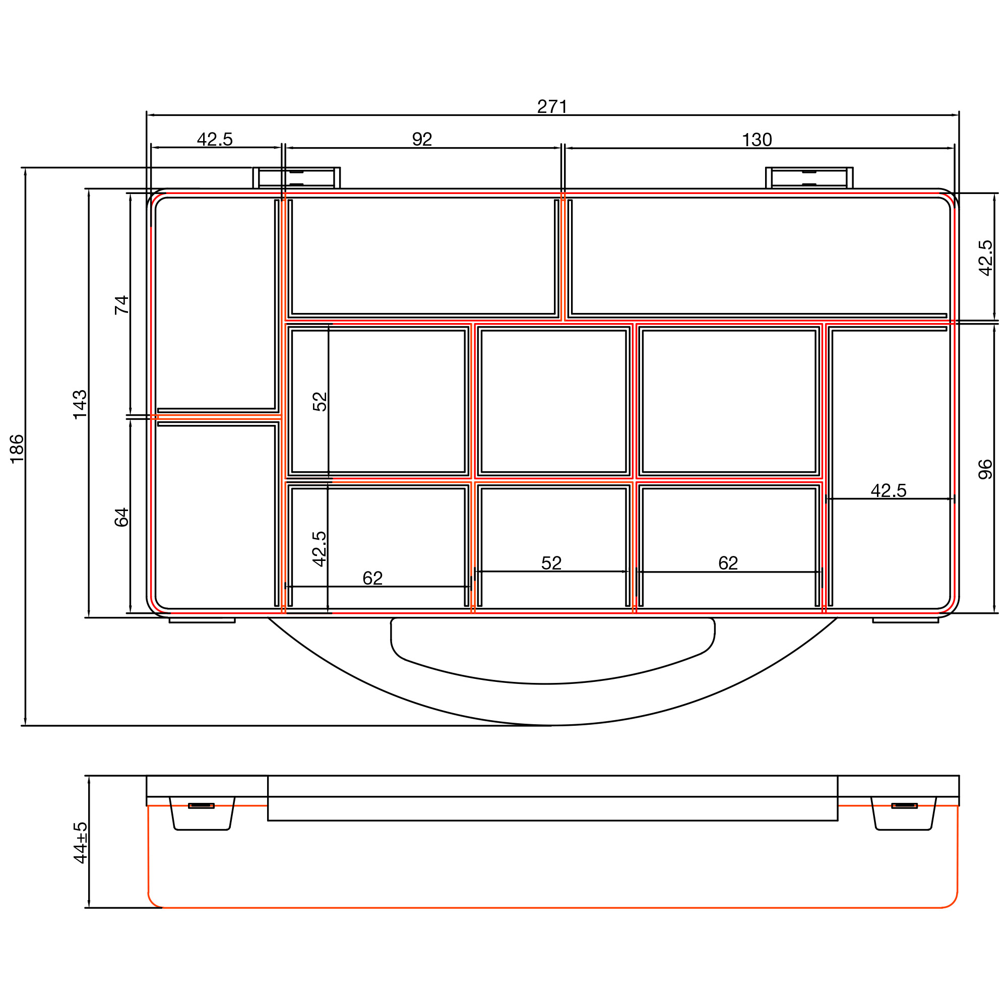 InLine® Kleinteilebox, 11 Fächer, Abmessungen: 271x186x40mm, orange