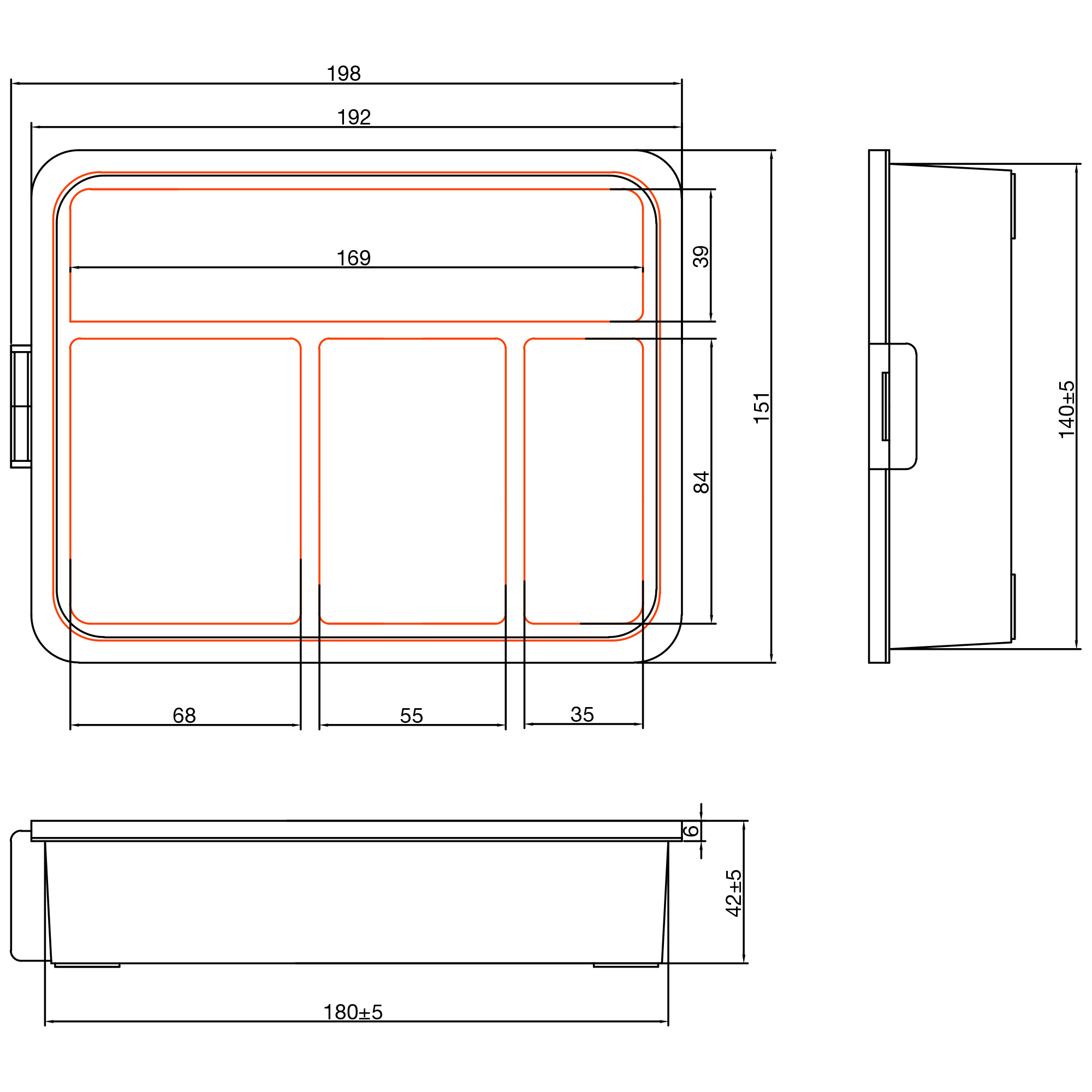 InLine® Kleinteilebox, 4 Fächer, Abmessungen: 180x140x40mm, orange