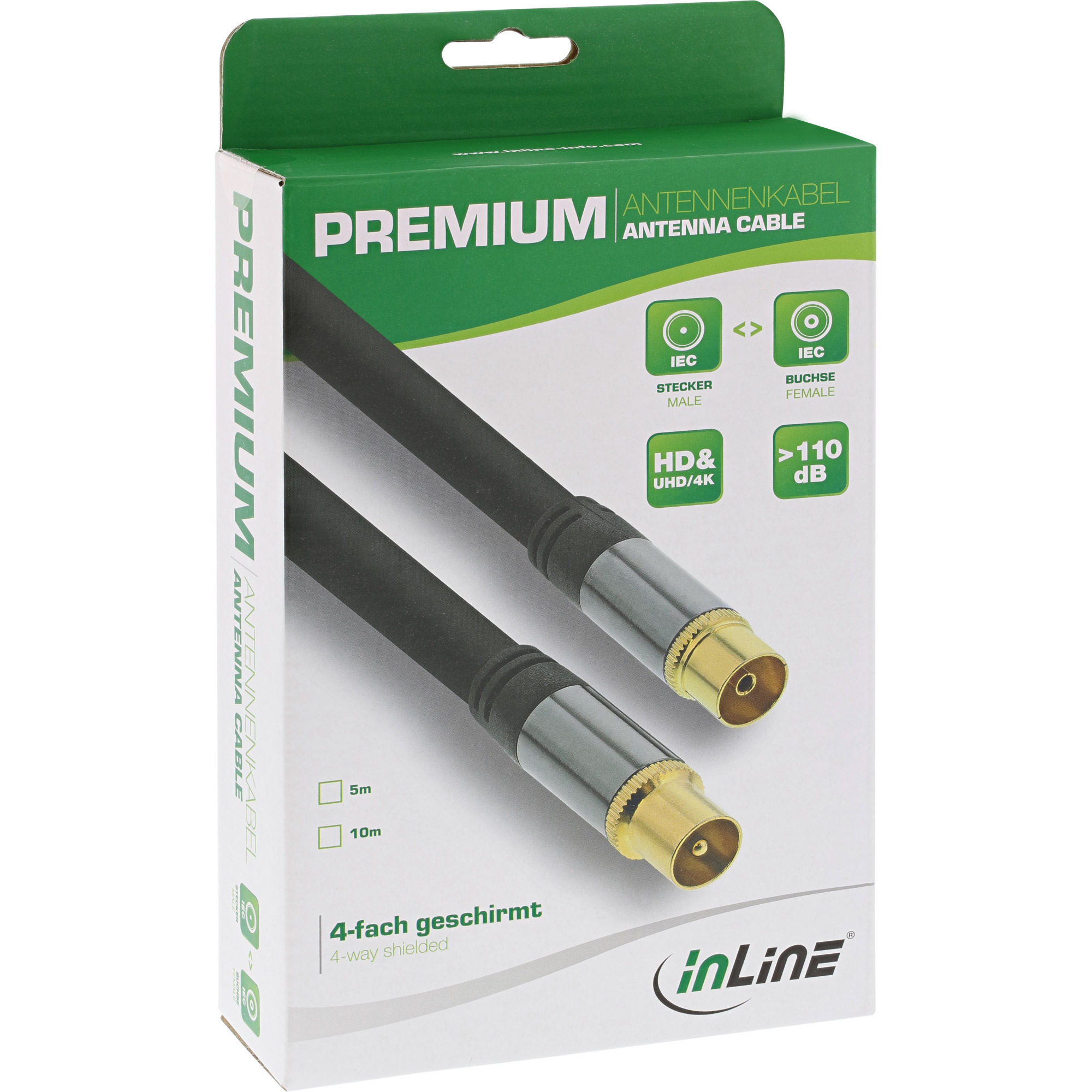 Startseite » Datenkabel & Adapter » SAT- und Antennenkabel » InLine® Premium Antennenkabel 4x geschirmt 110dB schwarz 10m