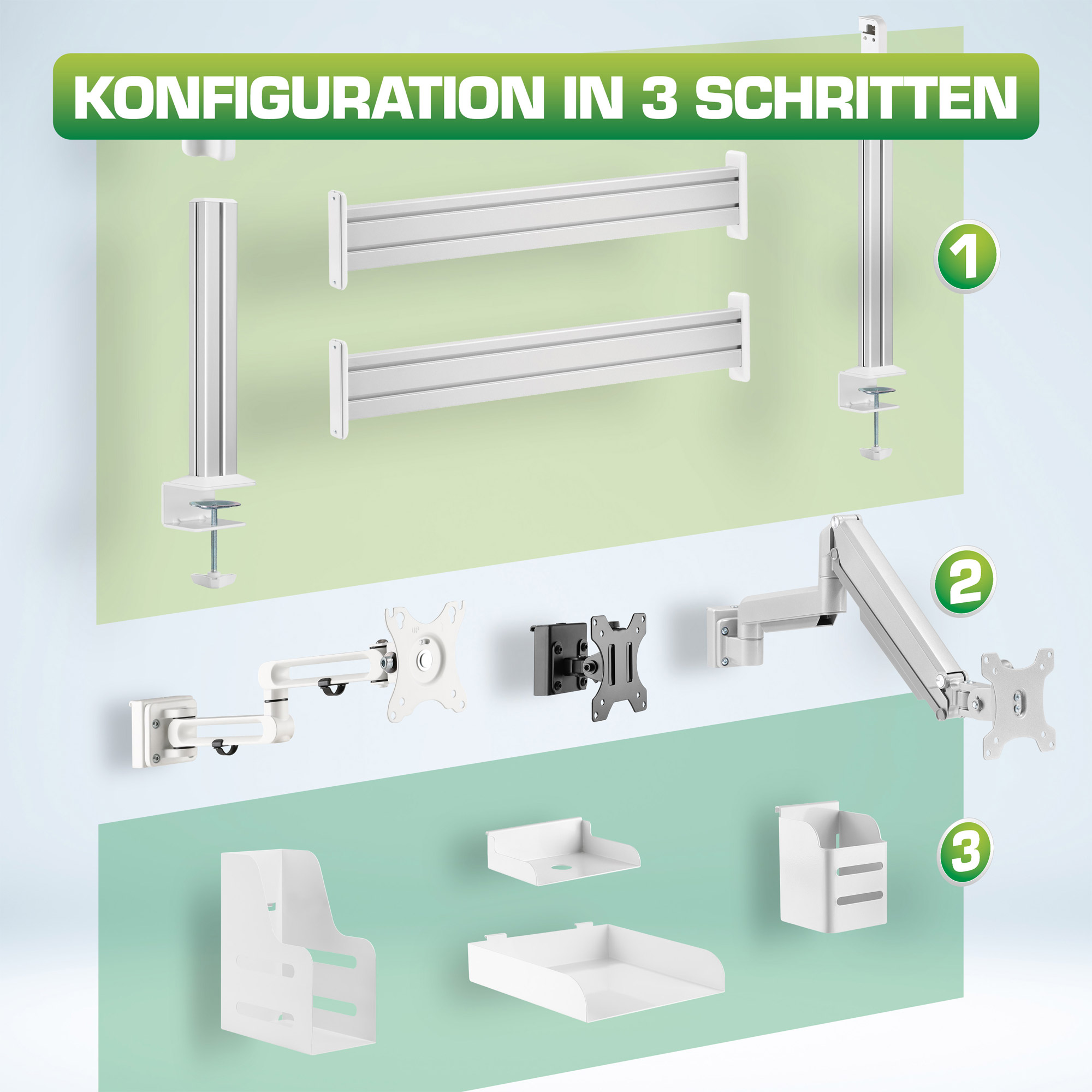 Die InLine® Slatwall-Serie schafft intelligenten Raum für die Einrichtung von Monitorhaltern und Zubehör wie Ablagen für Dokumente, Stifte und Schreibtischutensilien. Das System bietet zwei Montageoptionen für die unterschiedlichsten Installationsanforderungen als Tisch- oder Wandhalterung.