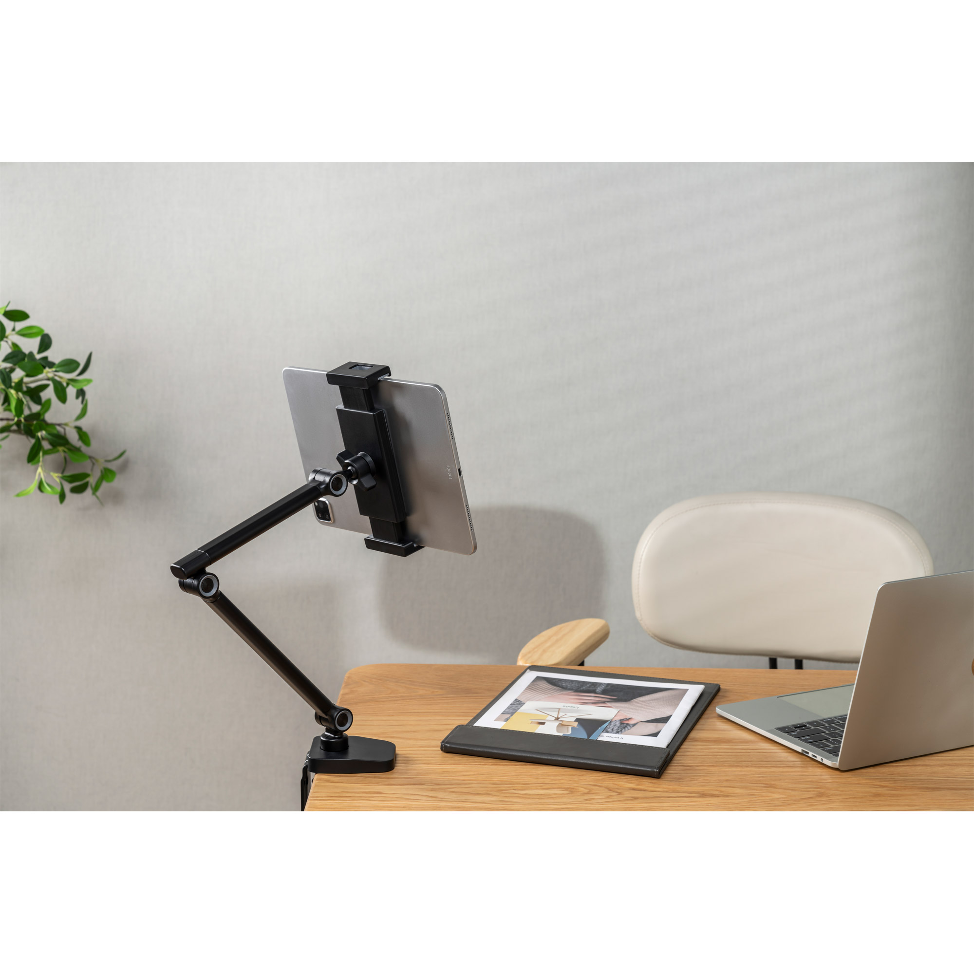 Der InLine® Tablet Halter mit Tischklemme ist das ideale Zubehör zum Arbeiten am Schreibtisch. Der Tablet Halter ist mit einem zweiteiligen Arm ausgestattet und bietet eine Arbeitshöhe von bis zu 51,5cm. Mit den variablen Klemmen passt er zu Tablets von 4,7" bis 12,9". Der Betrachtungswinkel kann individuell auf die Bedürfnisse eingestellt werden. Die Installation kann an 10-55mm starken Tischplatten erfolgen und ist perfekt geeignet für z. B. Live Streaming, Arbeit und Video Chat.
