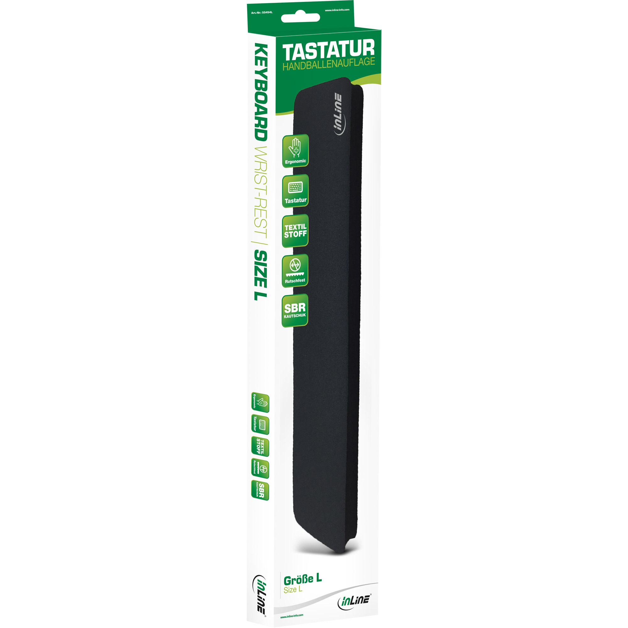 Startseite » Büro- & Technikzubehör » Büro- & Computerzubehör » InLine® Tastatur-Pad L schwarz Handballenauflage 440x95x18mm