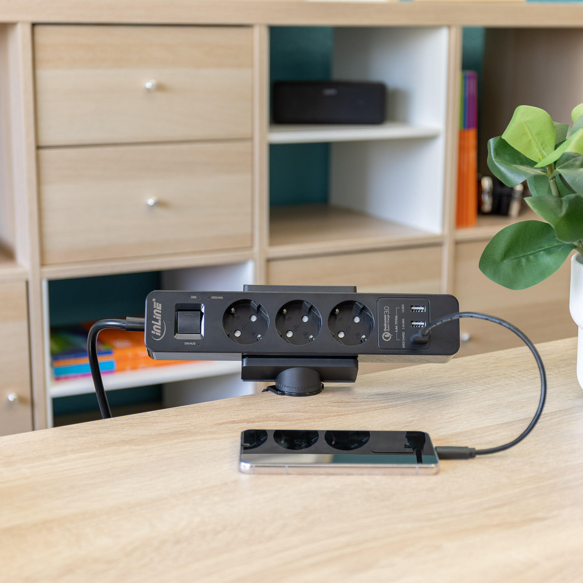 InLine® Tischklemme für Steckdosenleiste, drehbar, Schraubklemme, schwarz
