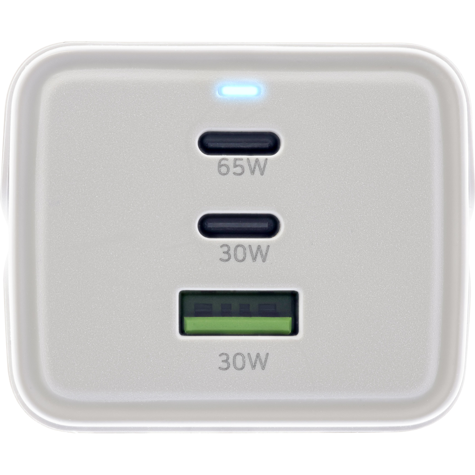 Erleben Sie das leistungsstarke und kompakte 65W GaN Ladegerät mit 2x USB-C Anschluss, 1x USB-A Anschluss, 1x Schutzkontaktbuchse und 1,5m Anschlusskabel - die perfekte Lösung für schnelles und effizientes Laden mehrerer Geräte gleichzeitig! Dank der GaN (Galliumnitrid) Technologie ist dieses Netzteil hocheffizient und ermöglicht eine bessere Leistung bei gleichzeitig kleinerer Bauform. Die Elektronen werden bis zu 1.000x effizienter geleitet als bei herkömmlichen Silizium-Halbleitern, was zu einer geringeren Wärmeentwicklung und weniger Energieverlust führt. Das 65W GaN-Ladegerät unterstützt außerdem an den USB-C Anschlüssen Power Delivery 3.0 und am USB-A Anschluss Quickcharge 4+ und bietet verschiedene Ausgangsoptionen.
