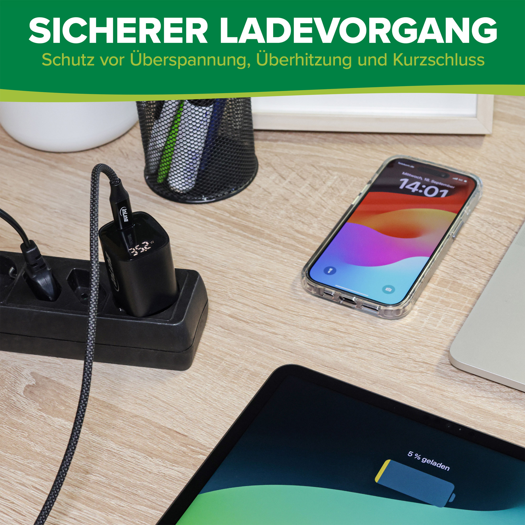 Dieses USB Netzteil von InLine vereint modernste Ladetechnologie mit einer smarten Verbrauchsanzeige. Erhalten Sie wertvolle Einblicke in den Energieverbrauch, während das Ladegerät Smartphone und Co. zuverlässig, schnell und sicher mit Strom versorgt. Über das eingebaute digitale Display haben Sie den aktuellen Energieverbrauch in Watt immer im Blick und können verschiedene Geräte miteinander vergleichen. Durch die Anzeige des Energieverbrauchs können Sie die Effizienz Ihrer Geräte überwachen, Ladegewohnheiten anpassen und lernen, bewusster mit Energie umzugehen. Das USB-Netzteil von InLine ist mit modernster, umweltfreundlicher Technologie ausgestattet, um eine schnelle und effiziente Ladeleistung zu gewährleisten. Mit einer hohen Ausgangsleistung von 45 Watt können Sie Ihr Gerät laden, ohne Einbuße bei der Ladegeschwindigkeit hinnehmen zu müssen. Die Galliumnitrid-Technologie (GaN) erhöht die Lebensdauer, Zuverlässigkeit, Ladeeffizienz und Leistungsdichte bei einer kompakteren und leichteren Bauweise. Durch den geringeren Energieverbrauch beim Laden, den reduzierteren Materialverbrauch bei der Herstellung und das kleinere Transportvolumen ist das InLine Netzteil besonders umweltfreundlich. Das Ladegerät unterstützt Power Delivery 3.0. Diese Schnellladetechnologie optimiert die Ladeleistung und -geschwindigkeit bei geringem Energieverlust. Die intelligente Ladeerkennung passt die Ladegeschwindigkeit an das Gerät und den Ladestand an. Das verkürzt die Ladezeit, schont den Akku und erhöht die Lebensdauer. Das USB-Netzteil ist ausgezeichnet isoliert und verfügt über einen umfassenden Schutz gegen Überspannung, Überhitzung und Kurzschluss. Das leichte, kompakte Design fällt unterwegs oder auf Reisen kaum ins Gewicht und findet in jeder Mehrfachsteckdosenleiste seinen Platz. Dank seiner Technologievielfalt ist dieses Netzteil universell einsetzbar und mit einer Vielzahl von Geräten kompatibel, einschließlich iOS- und Android-Geräten. Genießen Sie modernste Ladetechnologie, während Sie den Energieverbrauch Ihrer Devices im Blick haben.