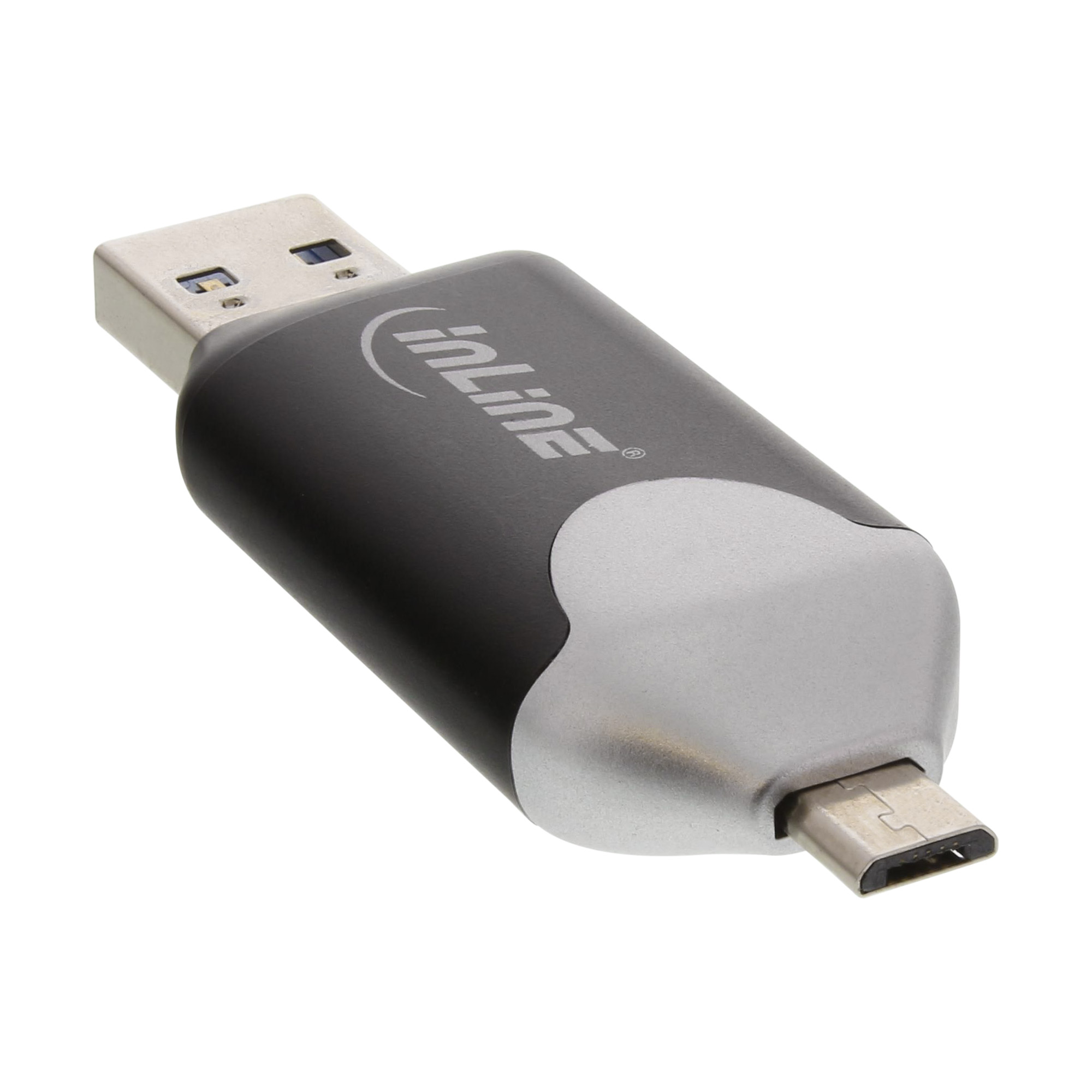 InLine® USB3.0 Dual Cardreader USB A und Micro-USB 2.0 für SDXC und microSDXC Android (OTG) und PC