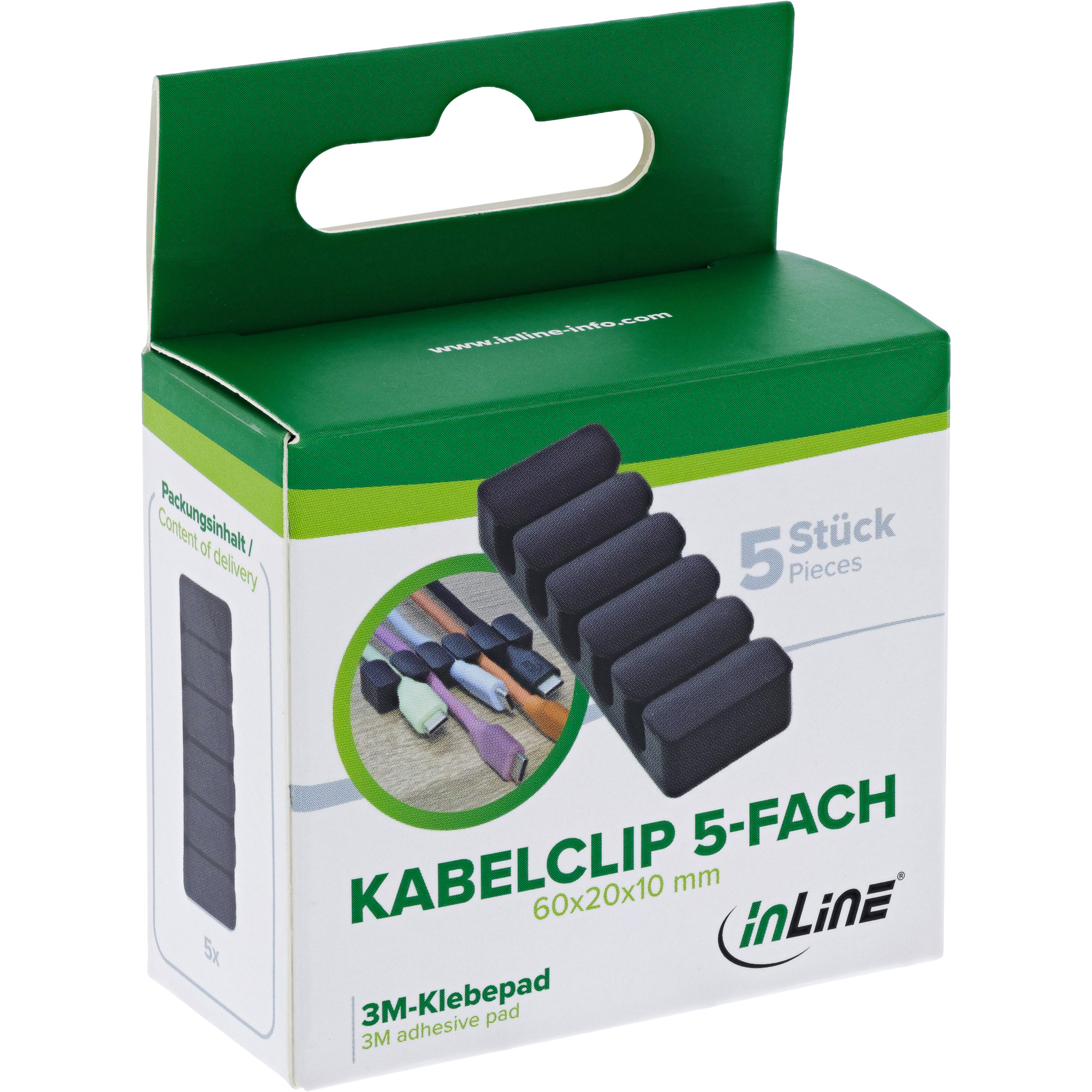 Der InLine® Kabelclip 5-fach bietet eine einfache und effektive Lösung zur Kabelführung ohne Bohren. Dank des hochwertigen 3M®-Klebepads lassen sich Kabel schnell, sauber und dauerhaft fixieren – ideal für den Einsatz im Büro, in Werkstätten, Fahrzeugen oder im Haushalt.