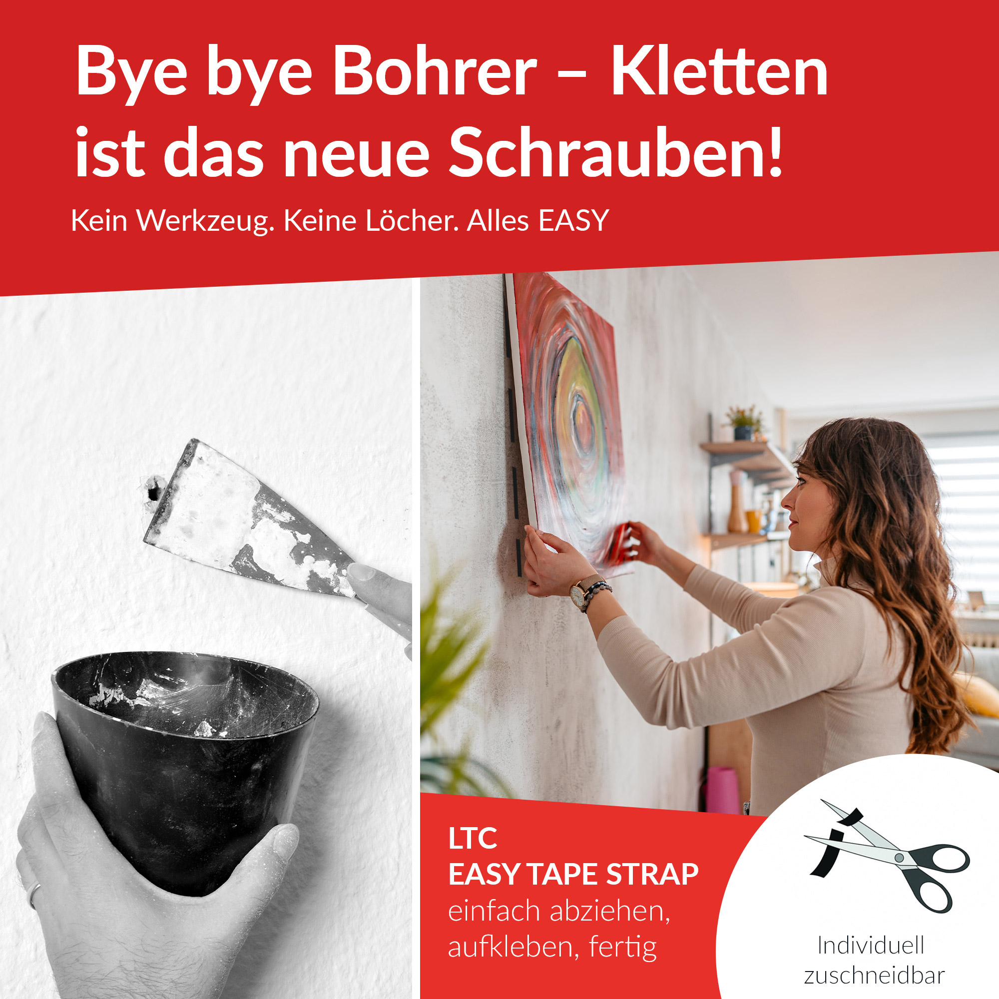 SOFORT HAFTEND UND BELASTBAR: Das EASY TAPE Klettklebeband kann direkt nach dem Anbringen sicher belastet werden – Starke Klebkraft ohne Wartezeiten wie beiherkömmlichen Klebelösungen, perfekt für schnelle Befestigungen ohne Bohren.