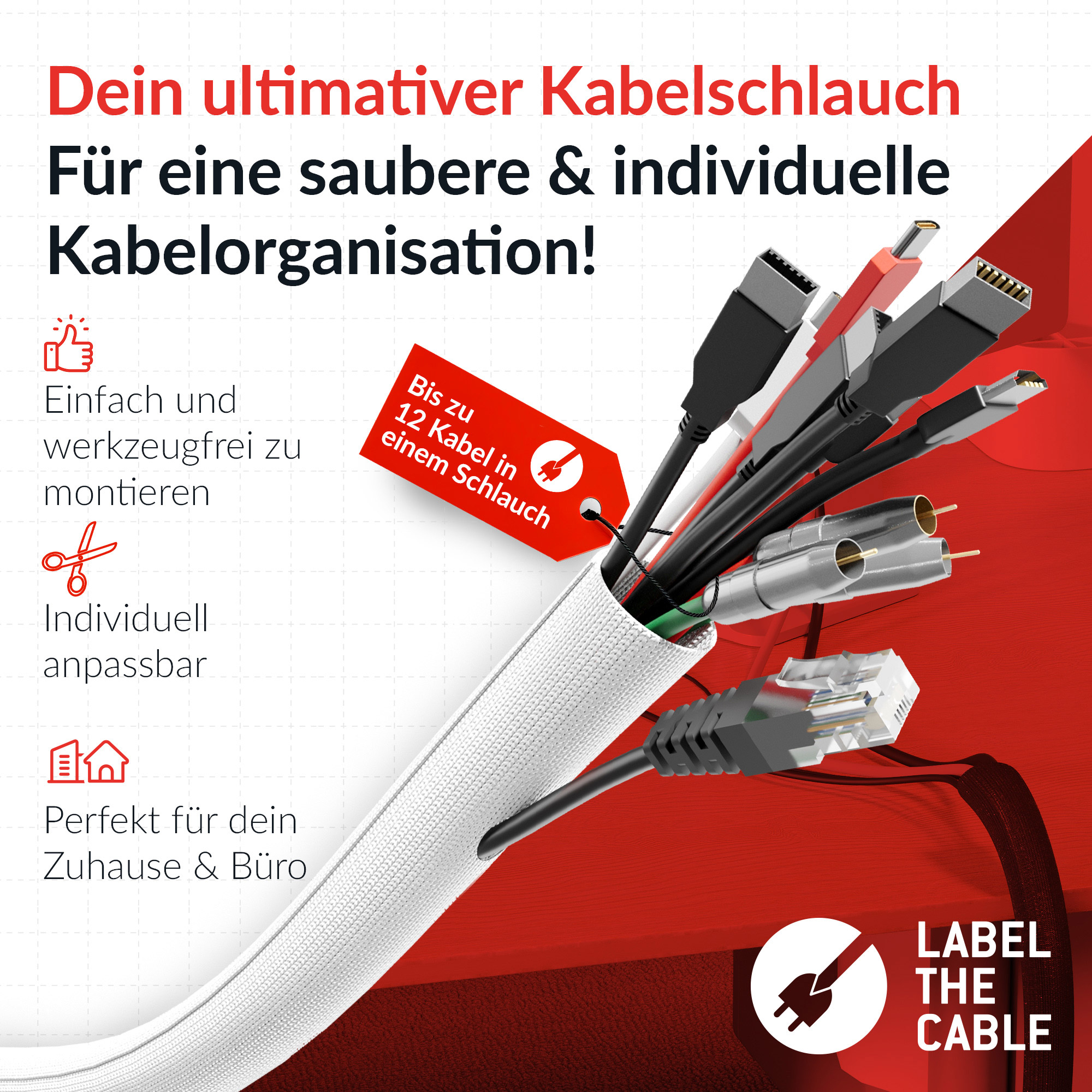 Label-The-Cable Tube, LTC PRO 5120, flexibler Kabelschlauch, 25mm/25m, weiß