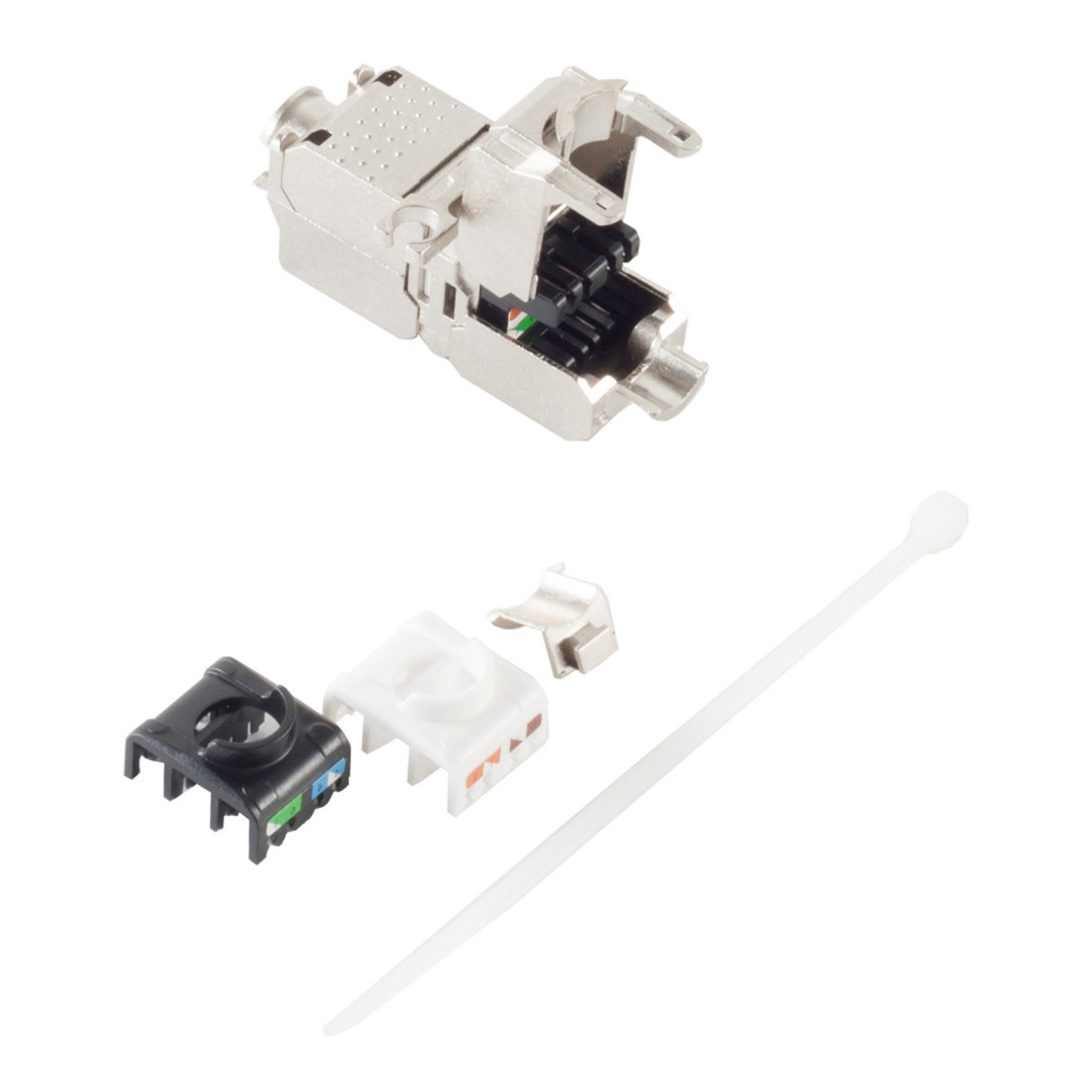 Der Verbinder ersetzt herkömmliche RJ45-Kupplungen dort, wo keine Steckverbindung gewünscht ist oder stabile, dauerhafte Kabelverbindungen benötigt werden. Die 1:1-Belegung aller acht Adern gewährleistet eine vollwertige Durchleitung bis 10-Gigabit-Ethernet.