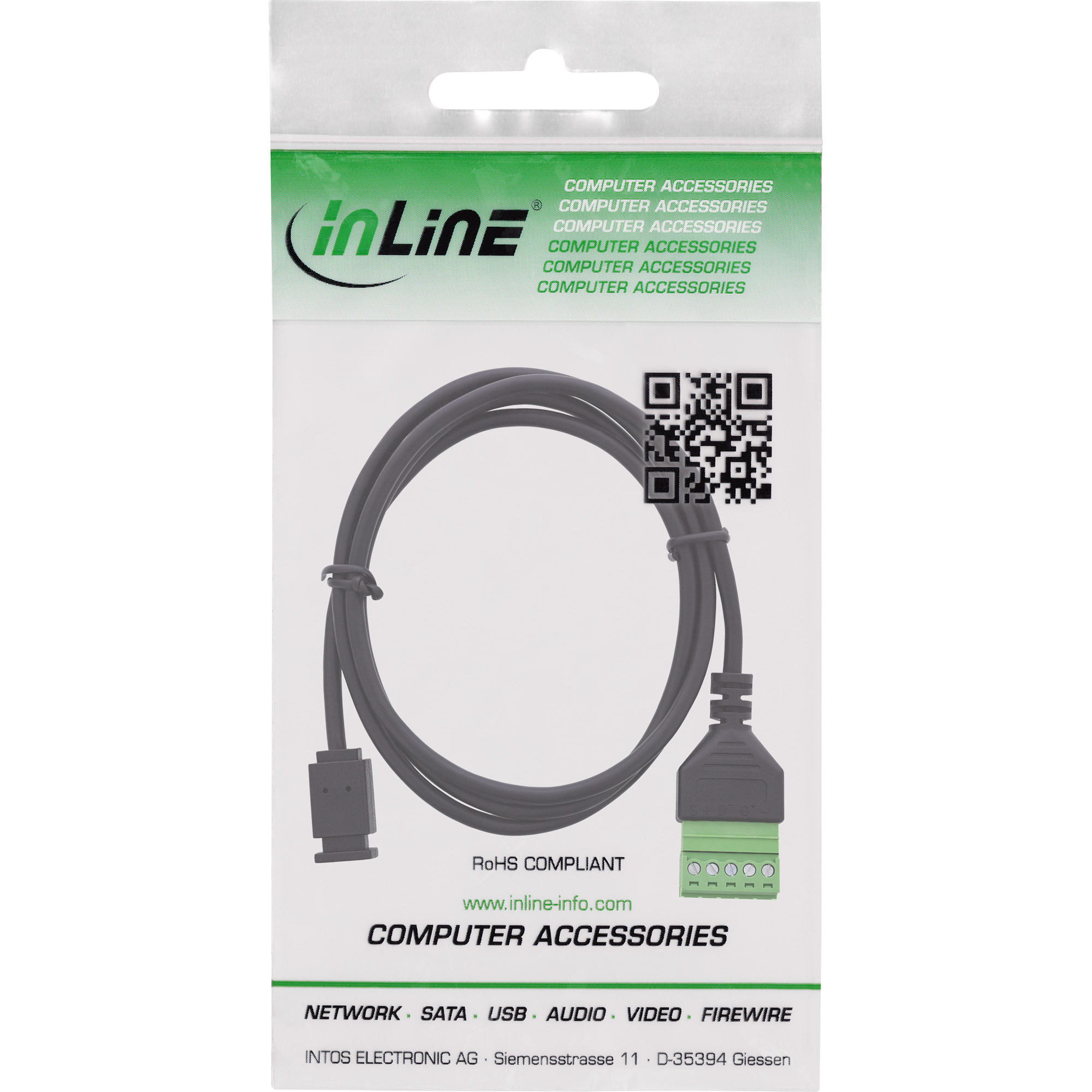 Als kompakte USB-Schnittstelle für Service, Test und Prototyping verbindet diese Mini-USB Buchse (USB 2.0) von InLine® ein fest integriertes 1 m Anschlusskabel direkt mit einem 5-poligen Schraubklemmenblock – ideal, wenn USB-Signale ohne Löten sauber auf offene Adern geführt werden sollen.