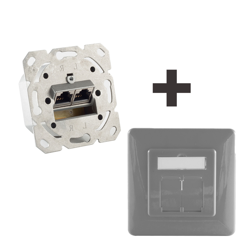 Startseite » Netzwerkdose Cat.6A Unterputz 2-fach, vollgeschirmt, LSA, horizontale Kabelführung, inkl. Zentralstück & Abdeckrahmen, Silber/Grau