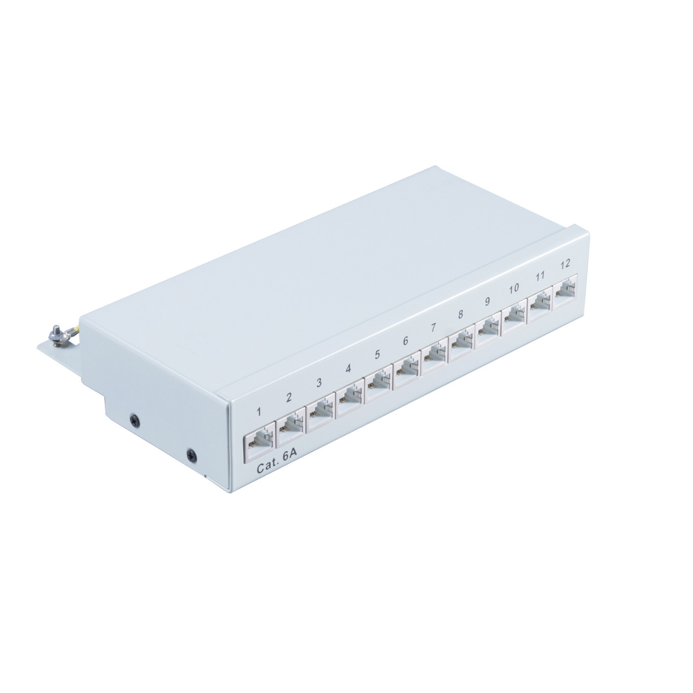 Patchpanel Cat.6A – 12 Port – geschirmt – Desktop/Wandmontage – lichtgrau