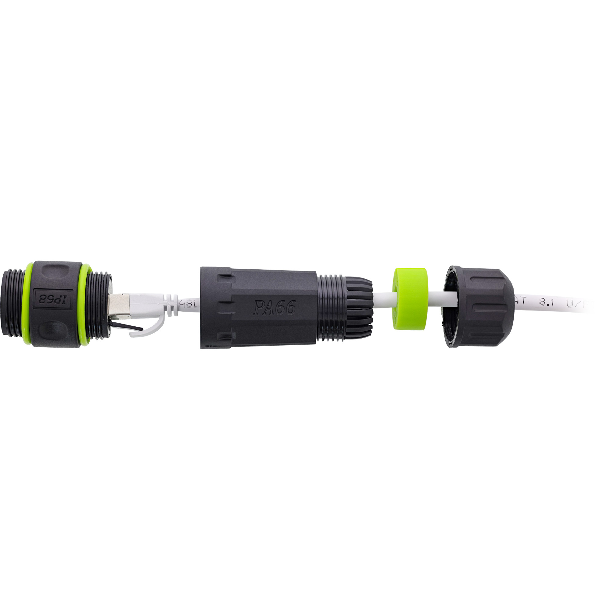 Die Ausführung mit zwei RJ45 Buchsen erlaubt die direkte Verbindung zweier Netzwerkkabel durch ein Gehäuse. Über das integrierte M20-Gewinde erfolgt die sichere Montage in Technikboxen, Verteilergehäusen oder Maschinen. Die Schutzart IP68 gewährleistet Staubdichtigkeit sowie Schutz gegen dauerhaftes Untertauchen.